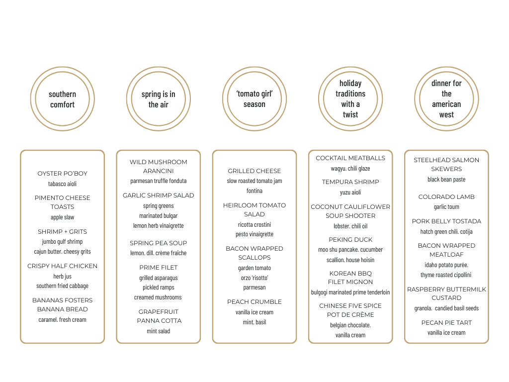 Everything we do is tailored to you but if you're having trouble deciding or need somewhere to start we've included a few of the menus that we've created recently for inspiration!